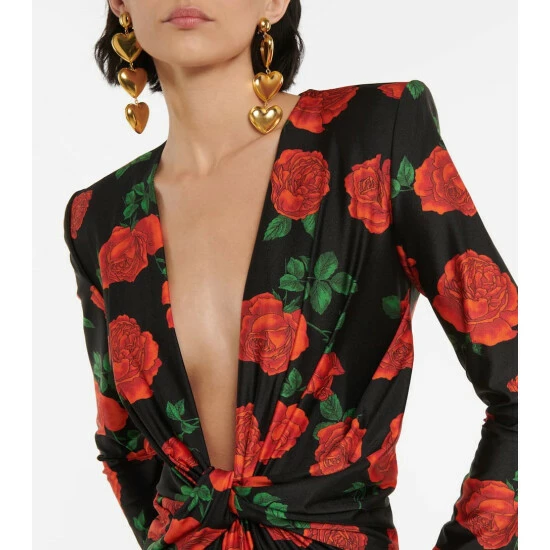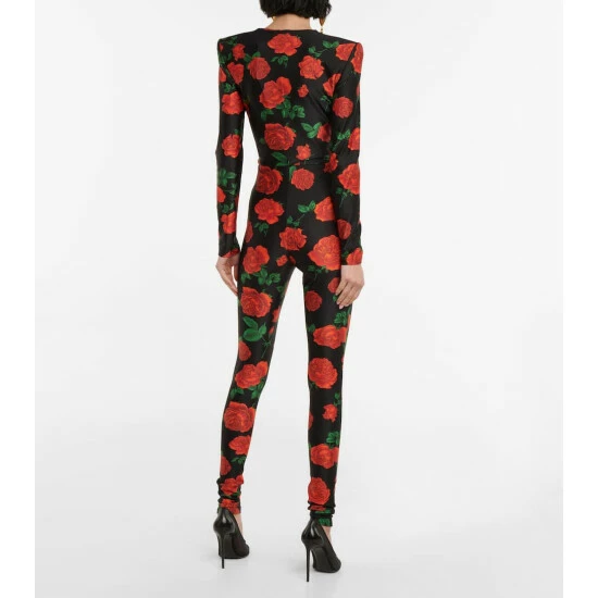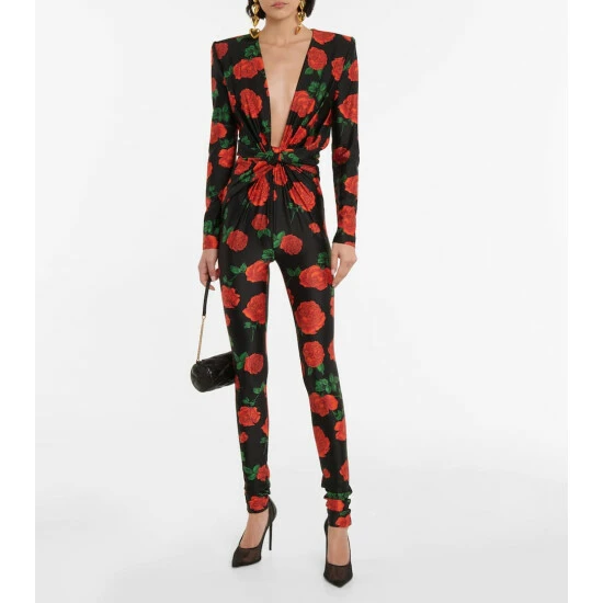 Unforgettable moments are made in this Saint Laurent jumpsuit. Characterized by gorgeous florals, this figure-hugging style is designed to embrace and strengthen femininity with its plunging neckline, structured shoulders, and gathered waist.