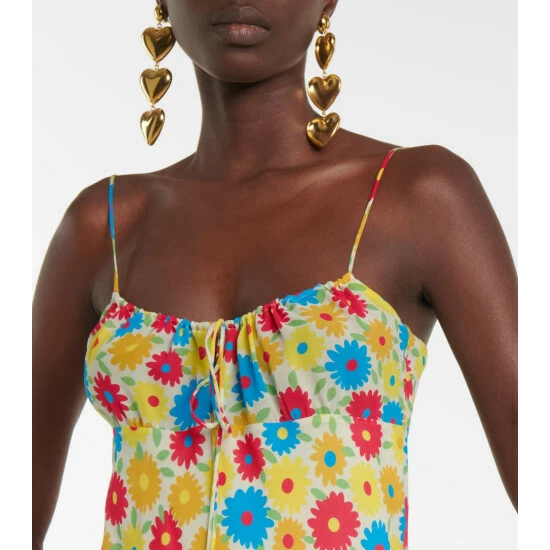 Saint Laurent prepares you for warmer climes with this retro-inspired floral minidress. It’s made from lightweight silk crรชpe de chine minidress with a self-tie neckline and barely-there shoulder straps.