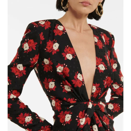 Take Saint Laurentโs high-octane glamour with you on date night in this minidress for an unforgettable look. Cut from pure silk with romantic florals, itโs shaped with a plunging neckline, structured shoulders, and gathered waist.