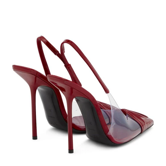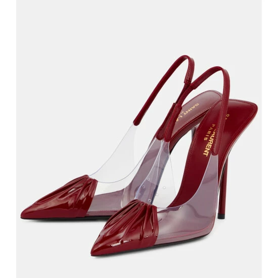 Made from leather with clear PVC panels at the sides, Saint Laurent’s Frida pumps have pointed toes, slingback ankle straps and stiletto heels.