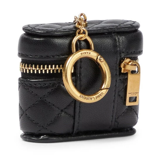 The puffer jacket β favorite silhouette among the fashion set β informs the design of the Gaby leather AirPods case from Saint Laurent. It’s padded and quilted with a chevron effect, and is made from soft lambskin leather with a flap top and internal slots.