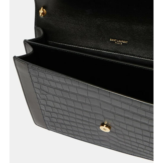 The Gaby Medium shoulder bag is crafted in Italy from croc-effect leather. Saint Laurent’s YSL monogram adorns the front flap, while two interior compartments, a zipped pocket, and a flat pocket at the back allow for easy organization.