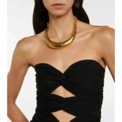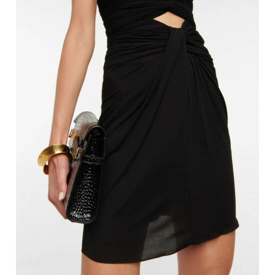 This gathered minidress from Saint Laurent is crafted with an artful combination of gathers and cutouts. The draped design falls to a mini-length hemline.