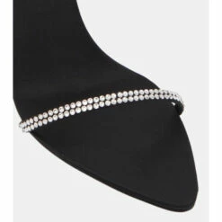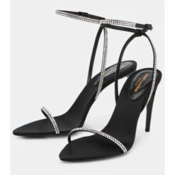 Finish your evening looks with the glamorous Georgia sandals from Saint Laurent. Made from crêpe satin, the style has an almond toe, comma stiletto heel, and crystal-embellished ankle straps.