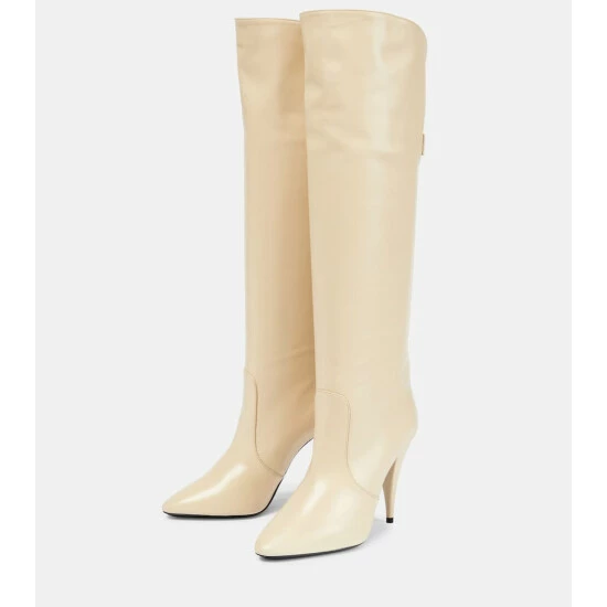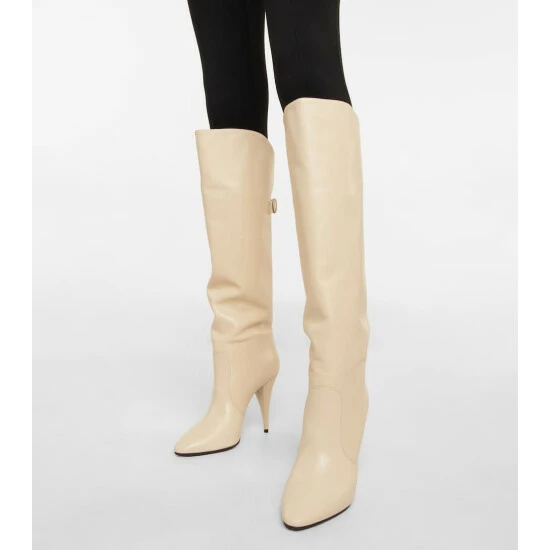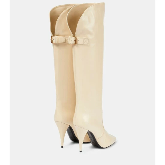 Wear the Harper boots from Saint Laurent during transitional seasons. They are made in Italy from smooth leather and feature buckles at the back and are set on 110mm cone heels.