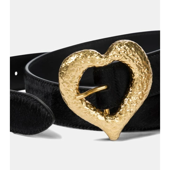 Complete weekday looks on a romantic note with this black Heart belt from Saint Laurent. Made in Italy from calf hair, it has a slender silhouette that’s ideal for cinching tailored pants, and fastens via an indented heart-shaped buckle.