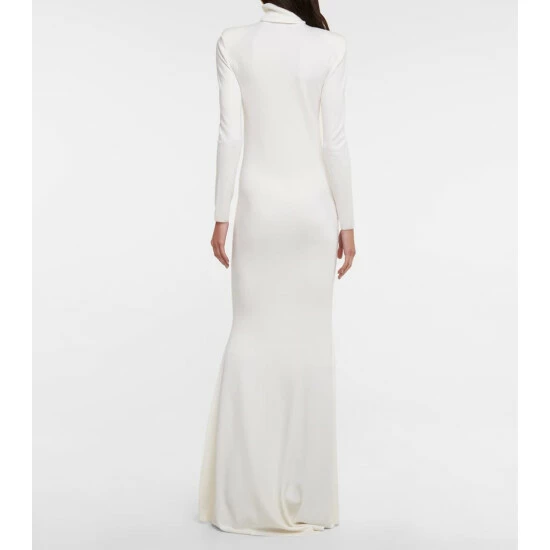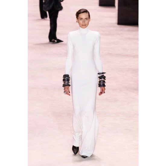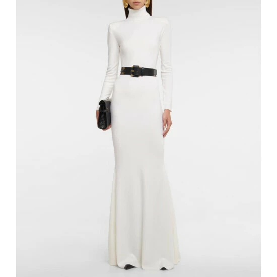 Straight off the runway, this ready-to-wear maxi dress from Saint Laurent looks set to be a sell-out piece. Crafted from wool, It oozes timeless sophistication with a high-neck top, fitted silhouette, and floor fluttering length.