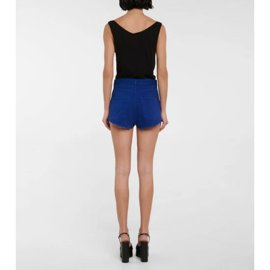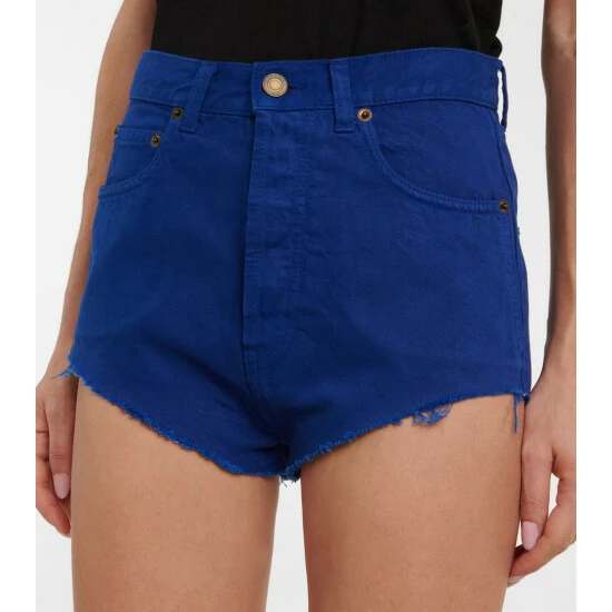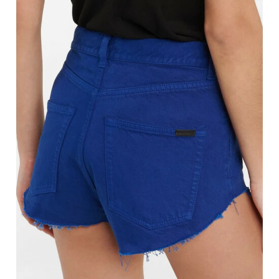 These high-rise denim shorts from Saint Laurent will go far in your wardrobe. They’re made from cotton denim in stop-and-stare blue, and have flattering high-cut legs with raw hems.
