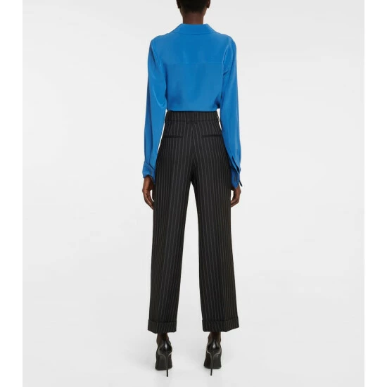 Saint Laurent’s Parisian flair shines through designs like these effortlessly chic pinstripe pants. They’re made from wool to a flattering high-rise, wide-leg silhouette with side-slit pockets – style with the matching blazer for enviable power suiting.