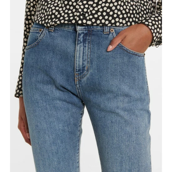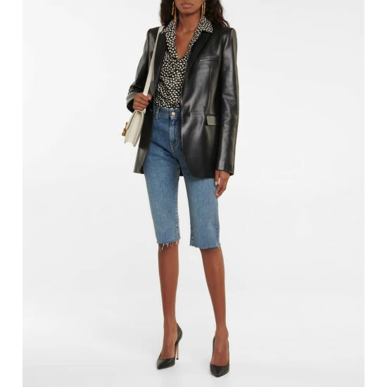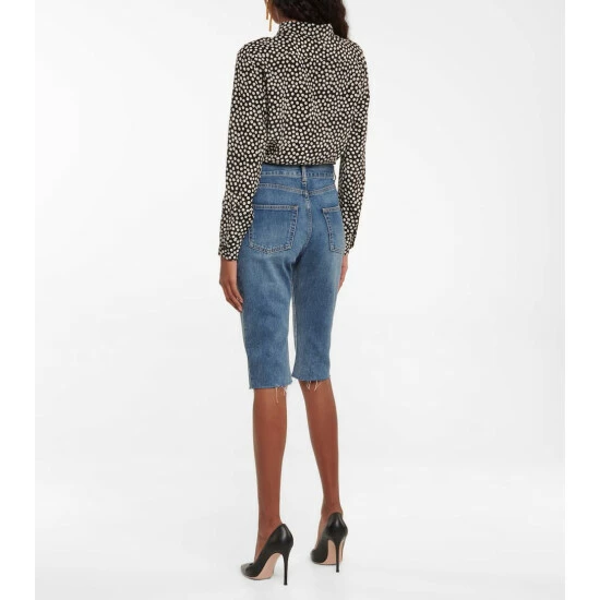 Paired with the label’s suiting blazers, these Saint Laurent skinny denim shorts offer contemporary yet casual chic. They sit at a high-rise, and are finished with raw hems.