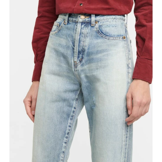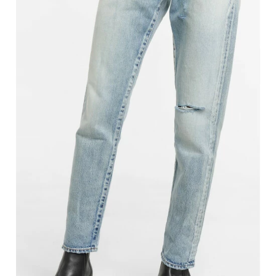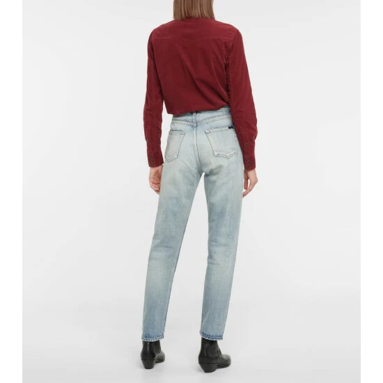 For elevated, yet unstudied wardrobe staples, Saint Laurent leads the charge with styles such as these light-blue jeans. Made in Japan from mid-weight denim that’s faded and slightly distressed, they have a high-rise silhouette with slim legs.