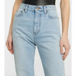 Invest in your denim edit with these faded jeans from Saint Laurent. The high-rise pair has long, straight legs that will suit styling with sneakers and pumps alike. Note the subtle logo-embossed hardware.