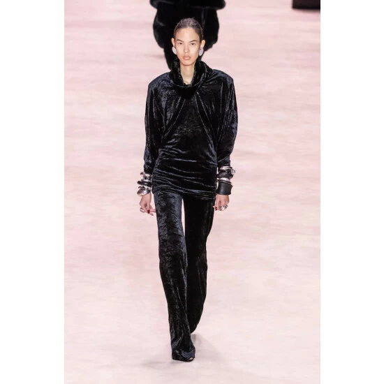Made from tactile velvet, these lustrous black pants from Saint Laurent have a high-rise waist and straight legs.