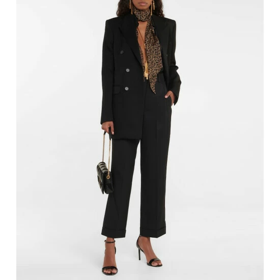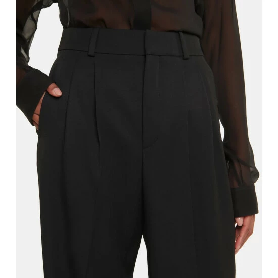 Saint Laurent’s tailoring has been a hallmark of the house since the Le Smoking blazer – a trailblazing take on menswear – debuted in mid ’60s. These high-rise virgin wool pants have wide-legs structured with pleats.