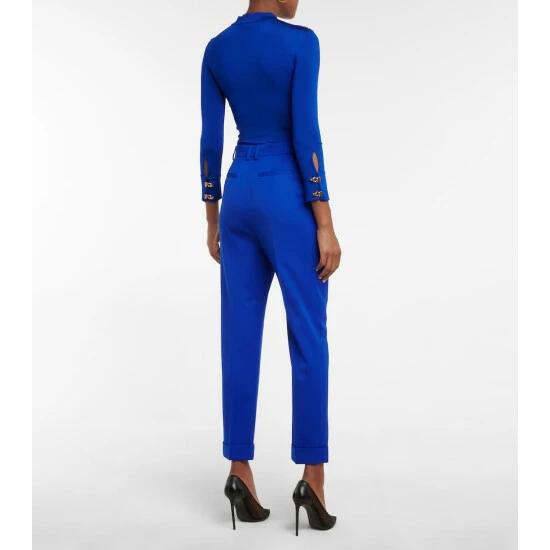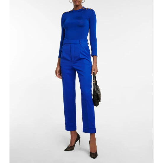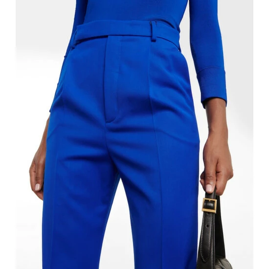 Suiting has been synonymous with Saint Laurent since the ‘Le Smoking’ suit was designed in the mid-60’s. These high-rise pants are made from wool gabardine with pressed pleat straight-cut legs.