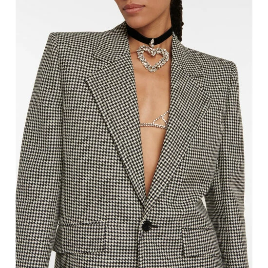 Trust in Saint Laurent, as we have since the 1960s, for sartorial masterpieces like this blazer. Tailored from Houndstooth-patterned wool, this single-breasted style is sharply structured with padded shoulders, peak lapels, and flap pockets.