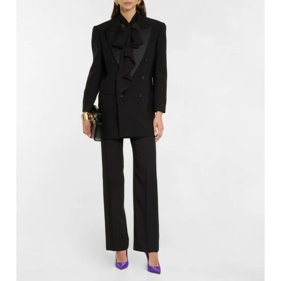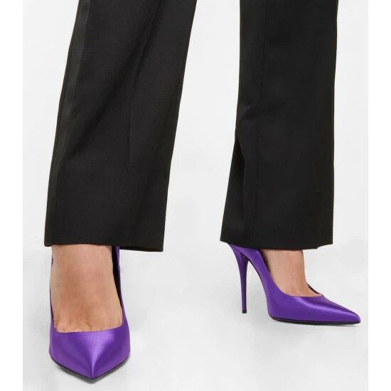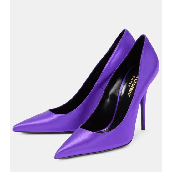 Finish your looks on a bold and sophisticated note with these pumps from Saint Laurent. Made from satin crรชpe with a leather sole, the lustrous style has a towering stiletto heel and a pointed toe.