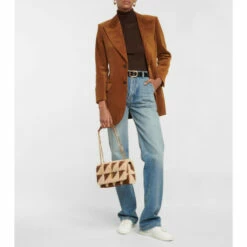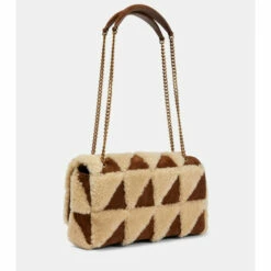 The Jamie Medium shoulder bag from Saint Laurent is immediately recognizable by its patchwork design in shearling and leather. This style has a front flap with magnetic closure and a bronze-toned chain strap .
