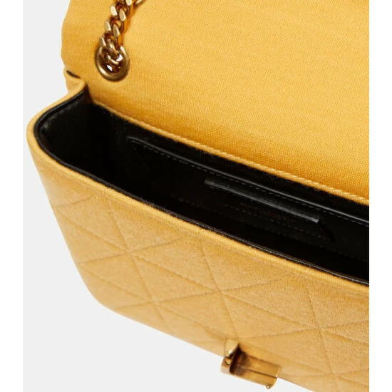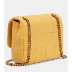 Add a hint of glam to your outfit with Saint Laurent’s Jamie shoulder bag. This mini iteration is made from yellow quilted knit fabric, and features the brand’s logo on the top flap.