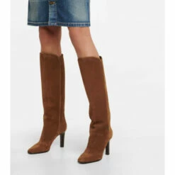 Saint Laurent’s Jane boots straddle the fine line between classic and modern. Made from smooth suede with knee-high shafts, this 90mm heeled pair is trimmed with side straps that are anchored with YSL monograms.