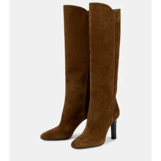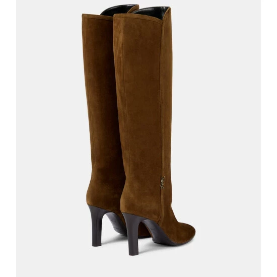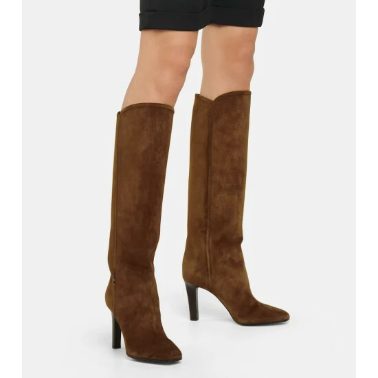 Finish any look on a feminine note with the Jane boots from Saint Laurent. This knee-high pair is made from cinnamon brown suede with curved toplines and 95 mm block heels. Flaunt them to full potential with barely-there hemlines.