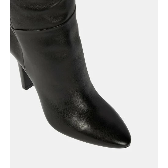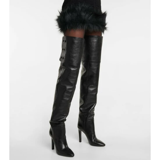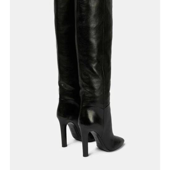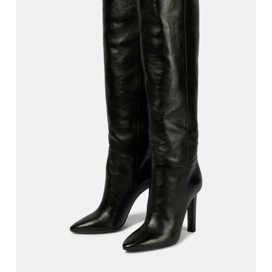 Cast a striking silhouette with the Jane over-the-knee boots from Saint Laurent. Made from textured leather, they’re set on towering stiletto heels, and have pointed toes and snap fastenings at their peaks.