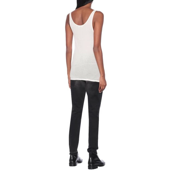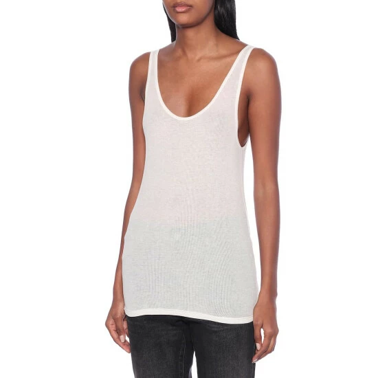 Complete your closet with elevated essentials such as this ivory-hued tank top from Saint Laurent. Crafted in France from cotton-blend jersey, its form-fitting silhouette is defined by a scoop neckline and slender shoulder straps. Use yours as the perfect layering piece for cardigans and blazers alike.