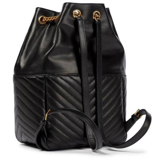 Saint Laurent effortlessly merges practicality and style with the Joe backpack. It’s made from leather with chevron quilting, a chainlink drawstring, and iconic monogram hardware.
