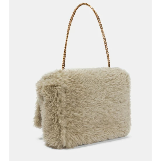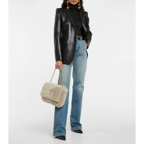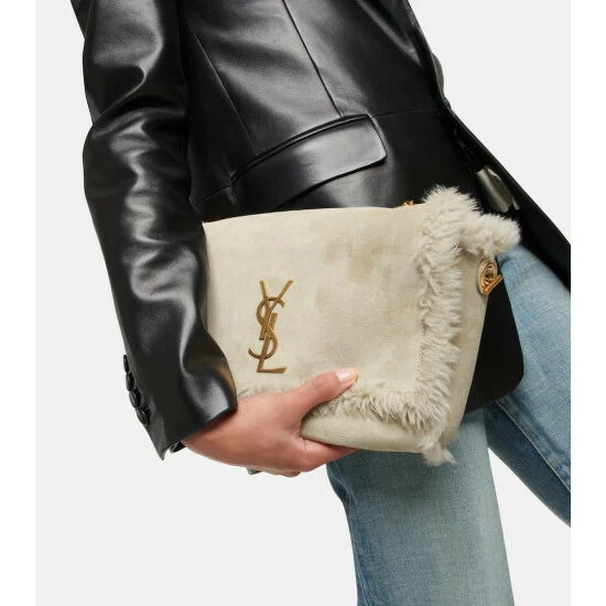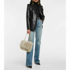 The Kate shoulder bag from Saint Laurent is a reversible design made from leather with a soft shearling exterior and suede lining. The iconic YSL branding in the front is instantly recognizable.