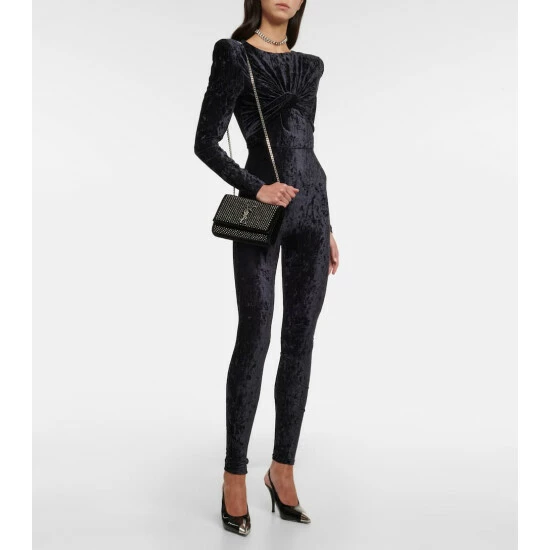 It’s easy to see why Saint Laurent’s Kate bag sits at the top of many wishlists. Made from velvet, this iteration is covered in crystals, topped with glossy hardware, and dangles from a shiny chain strap.