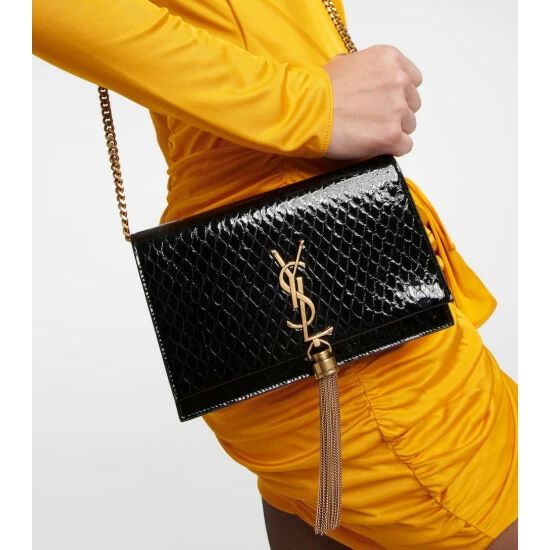 Its easy to see why Saint Laurent’s Kate bag sits at the top of many wishlists. This Italian-crafted piece dangles from a shiny chain strap, and its leather lined interior closes with magnetic fastening to complement the envelope design.