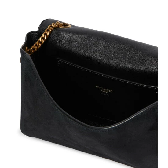 Saint Laurent’s latest Kate Small bag is fully reversible; wear it suede-side-out or change to smooth leather as your mood suits. A gleaming YSL emblem nestles on the flap of both sides for assured recognition.