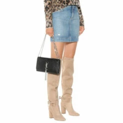 Finish your ensemble on a luxe note with Saint Laurent’s embossed Medium Kate Tassel leather shoulder bag. The coveted crocodile-effect is finished off with the house’s YSL logo, complete with a swinging tassel in silver tone. Team yours with a leopard-printed blouse and a denim miniskirt to embrace the brand’s gamine-chic aesthetic.
