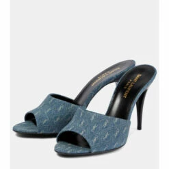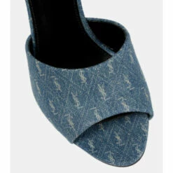 The La 16 sandals from Saint Laurent are this spring’s must have. The pair is made in Italy from light-wash denim embroidered with a beige logo pattern and set on 95mm slim heels.