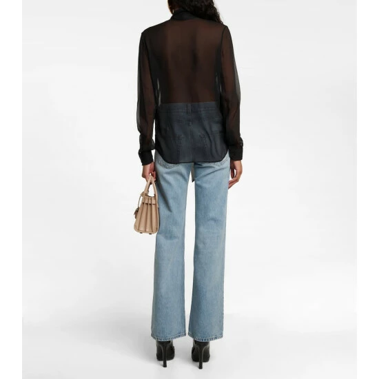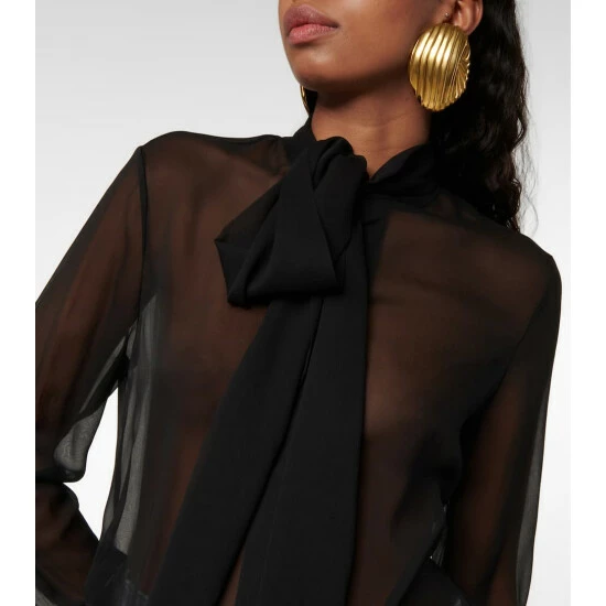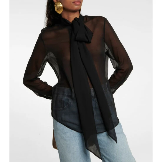 Saint Laurent presents refined elegance with this semi-sheer blouse. Made in Italy from pure silk, this black design comes with a lavallière tie-neck collar detail.
