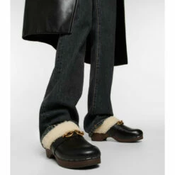 The Le Maillon clogs feature Saint Laurent’s emblematic chain detailing to the vamps. This tactile leather and shearling style is made in Italy and features contrast stitching to the wood-inspired midsoles.