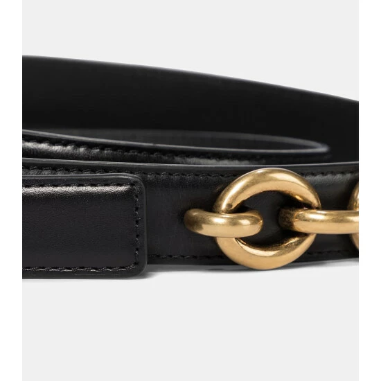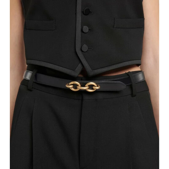 Complete any look on a subtle note with this belt from Saint Laurent. Golden Le Maillon hardware adds the house’s typical tough glamour to this slim design, which is made from smooth black leather.