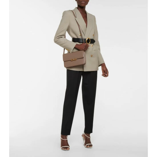 Channel Saint Laurent’s inimitable elegance with Le Maillon leather shoulder bag in tan brown. Taking its name from the golden chainlinks that adorn the foldover flap, it has been designed in an spacious accordion shape, practically compartmentalized for ease of organization. Consider it a polished finishing touch for every ensemble.
