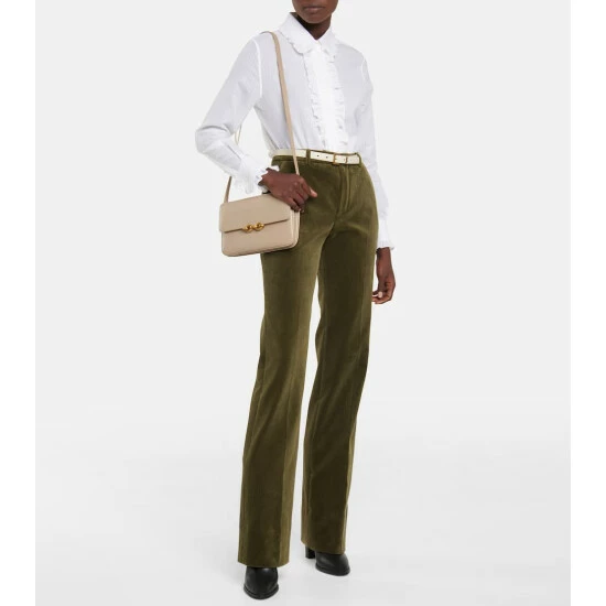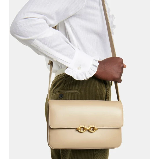 The Maillon design is the ultimate Saint Laurent bag. Taking its name from the golden chain that adorns the foldover flap, this practical piece – which is made from beige leather – will “link” all of your outfits together. It has an accordion shape with a front slot and two divided compartments, one of which contains a zipped pocket.
