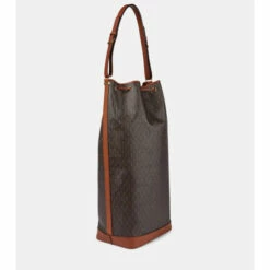 Saint Laurent’s Le Monogramme bucket bag is made from canvas with an all-over logo print and brown leather trims. Hanging from a single shoulder strap, it has a fully lined capacious interior that secures with a classic drawstring top.