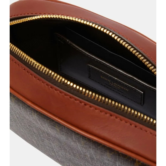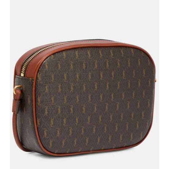 Le Monogramme Small shoulder bag from Saint Laurent evokes a vintage-inspired aesthetic with it’s lozenge monogram print on canvas. The camera bag style is crafted with leather trims and has an adjustable shoulder strap.