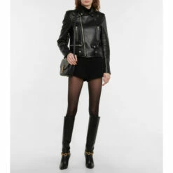 For the ultimate tough-luxe style, look to Saint Laurent’s biker jacket. It’s made from lamb leather that will soften over time, and features silver-toned zippers and studs. Its slightly cropped silhouette indulges a more feminine side.