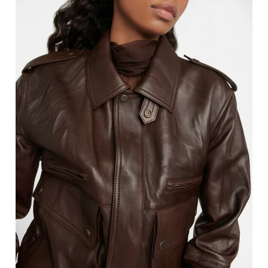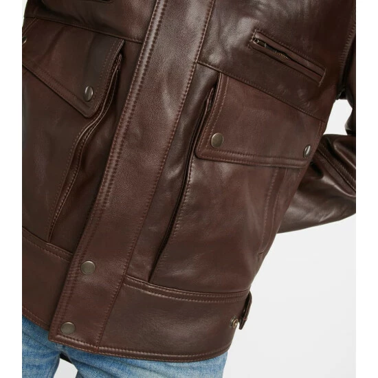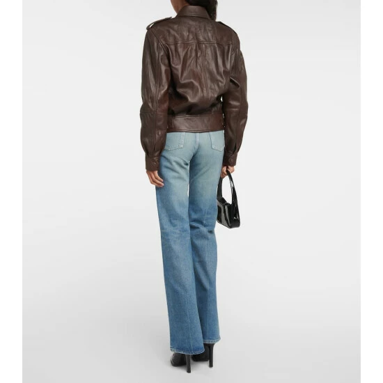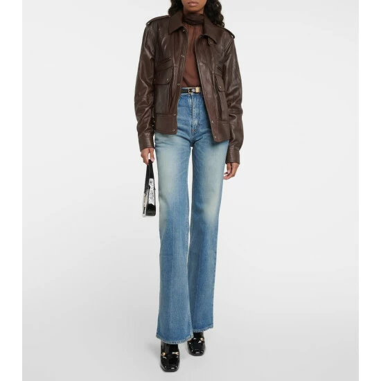 Vintage motorcyclist pieces inspire this Saint Laurent jacket. This lambskin piece has a boxy, multi-pocket silhouette with shoulder epaulets, a point collar, and press-stud side tabs.