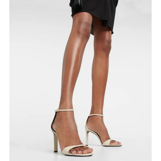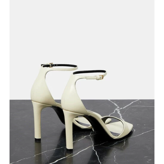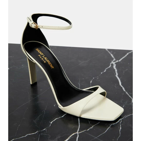 Saint Laurent creates a timeless vision of empowered elegance for these stiletto sandals. Boasting a barely-there silhouette, this grained lambskin pair features angled vamp straps and slim heels.