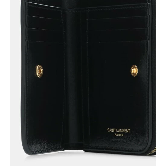 For the merest hint of YSL mania, opt for this black leather wallet from Saint Laurent. A zippered compartment keeps your valuables secure, while myriad slots for cards and cash are easily accessible. Choice golden adornments β including the YSL monogram and foil-embossed branding β will complement those on your favorite Uptown tote.
