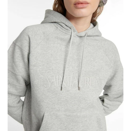 Invest in the chicest loungewear available with this cotton-blend jersey hoodie from Saint Laurent. This style has a drawstring hood, raglan sleeves, and a kangaroo pocket with a soft fleece interior.