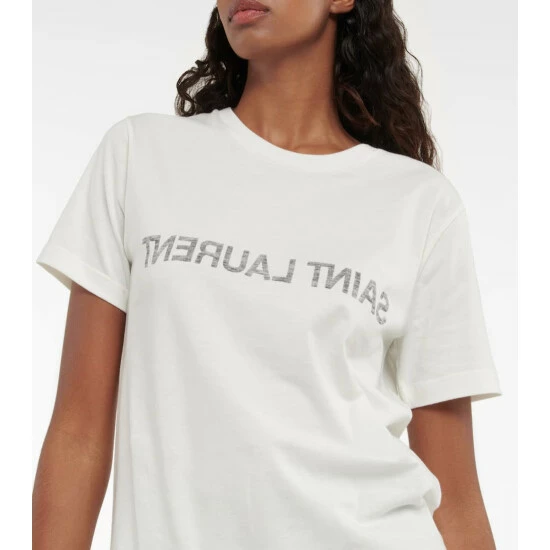 Flip your idea of the logo print with this short-sleeved T-shirt from Saint Laurent. Made from lightweight cotton jersey, the crewneck design has a reverse logo print evoking an inside-out feel.