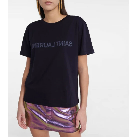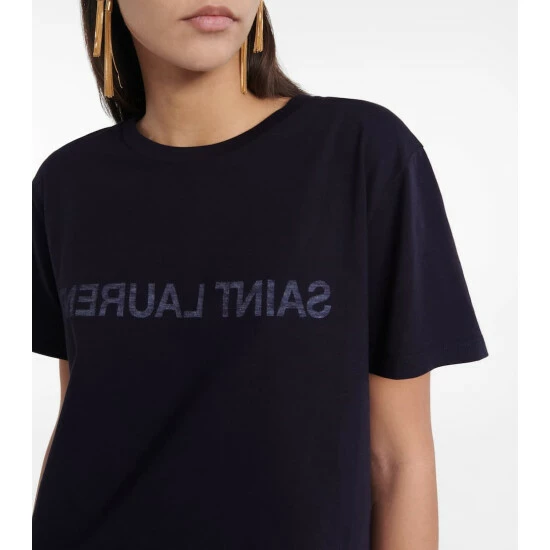You’ll be catching yourself in the mirror with this navy T-shirt from Saint Laurent. It’s made from pure cotton, and bears a reverse logo print.