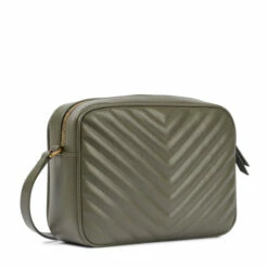 Finish every look on a note of Parisian chic with the Lou Camera crossbody bag from Saint Laurent. The khaki style is made from chevron matelassé leather and adorned with antiqued golden hardware.