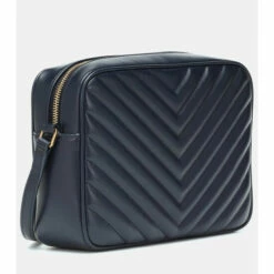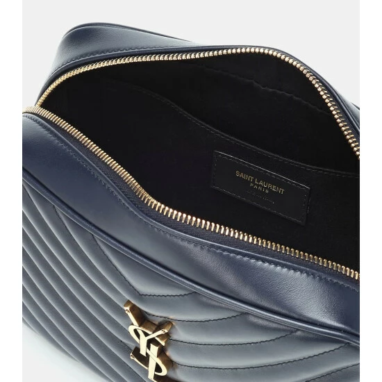 Finish every look on a note of Parisian chic with the Lou Camera crossbody bag from Saint Laurent, presented here in navy blue. Crafted in Italy from chevron matelassΓ© leather, the design is adorned with golden hardware, including the iconic YSL monogram logo on the front.